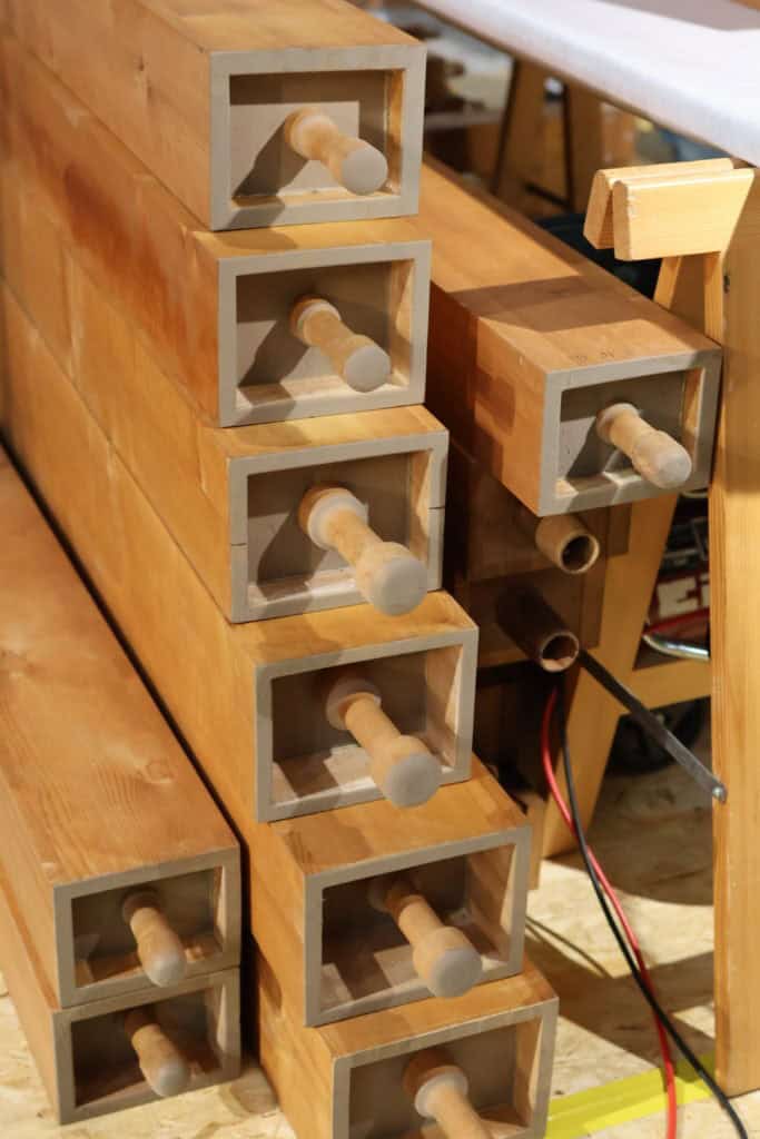 Une fois enclenché, un registre envoie un signal électrique qui active un moteur : ce moteur ouvre le registre correspondant. Lorsque l’on appuie sur une touche, une soupape s’ouvre et le vent fait sonner les tuyaux du registre activé. Ce système complexe et discret est indispensable au bon fonctionnement de l’orgue. Le chantier actuel est aussi l’occasion de vérifier et d’entretenir cette mécanique invisible, mais essentielle.