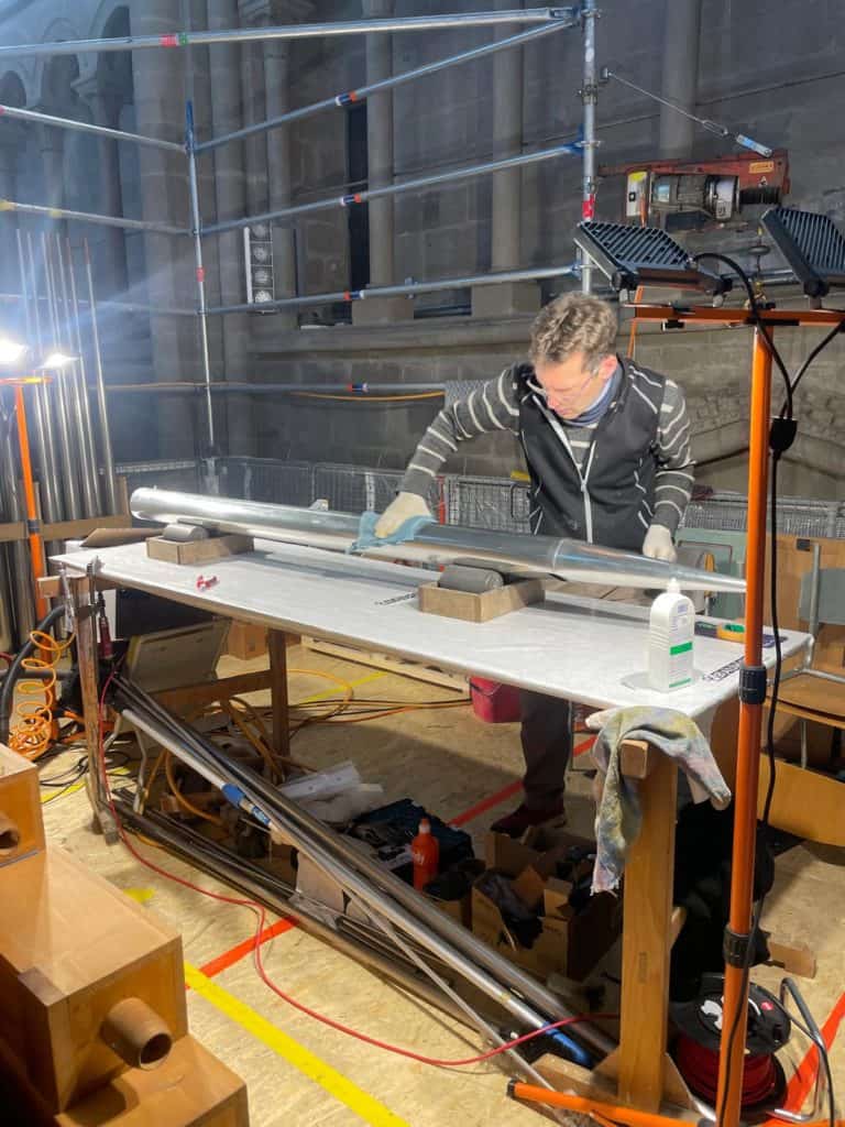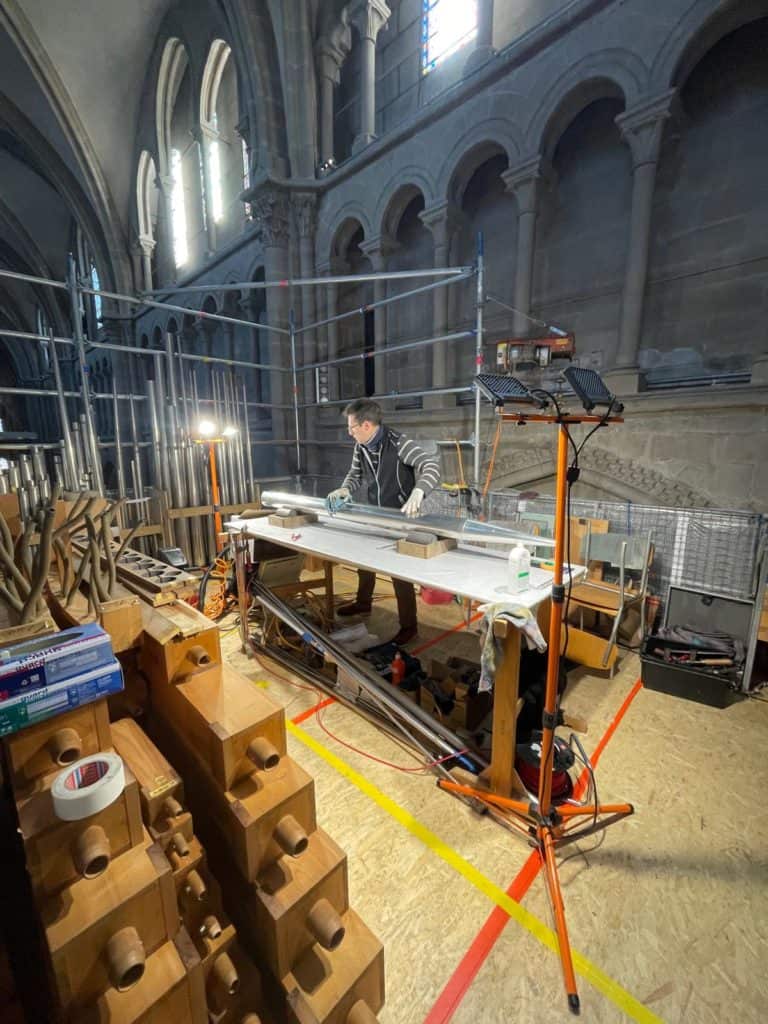 Du plus petit au plus grand, ils sont près de 5000 tuyaux à composer le Grand-Orgue Metzler de la Cathédrale Saint-Pierre ! Cette semaine, les facteurs d’orgue ont laissé la place aux tuyautiers, les spécialistes des tuyaux.