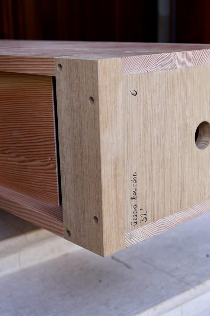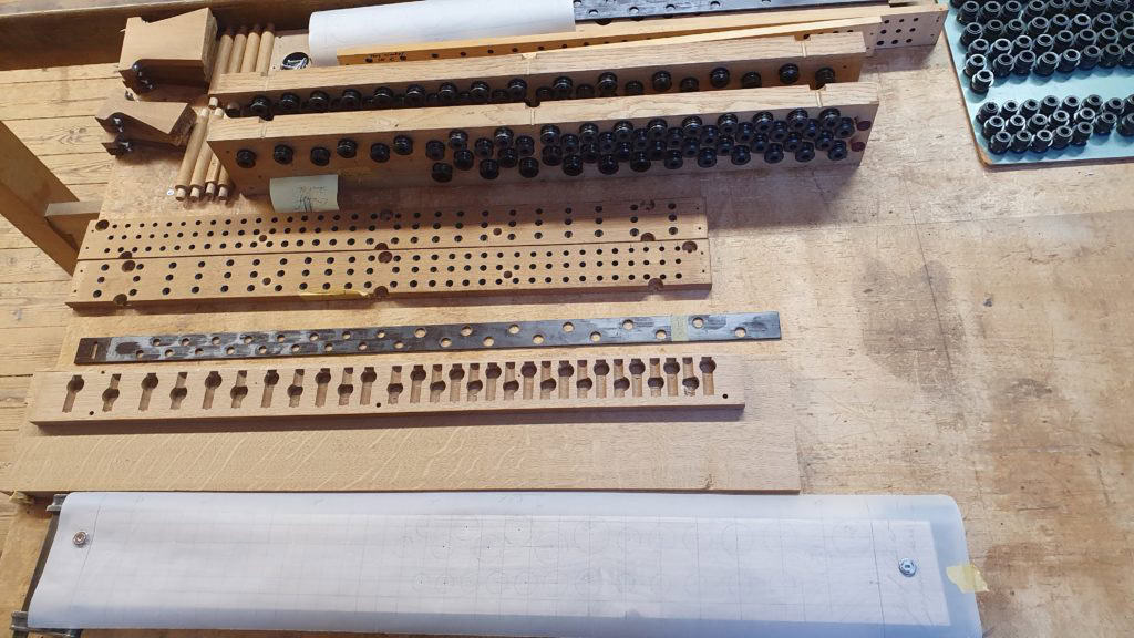 Certains éléments sont entièrement réalisés ou repris sur place : les joues de la console (ses panneaux latéraux), des éléments de menuiserie à l’arrière du buffet, ainsi que les futurs planchers d’accord (les plateformes intérieures qui permettent d’accéder aux tuyaux pour les accorder et les entretenir).