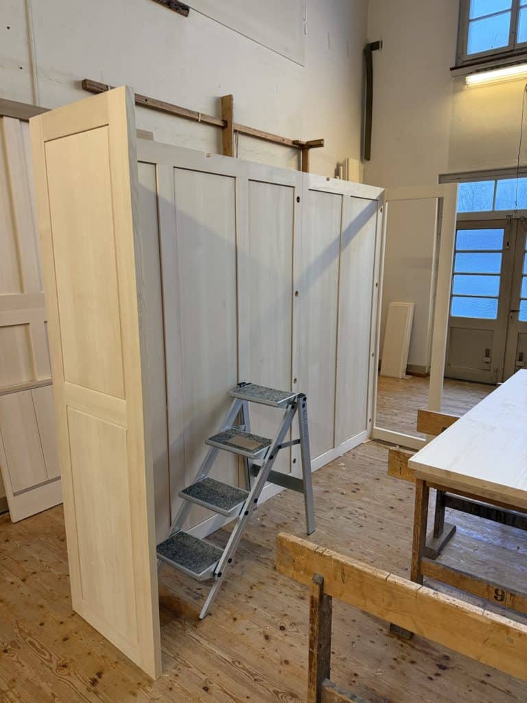 Après le trajet depuis Zürich, tout a été sorti du camion, porté à plusieurs et installé provisoirement dans la nef. Les grandes pièces en bois attendent maintenant la prochaine étape du chantier : leur montée vers l’orgue dans les jours à venir.