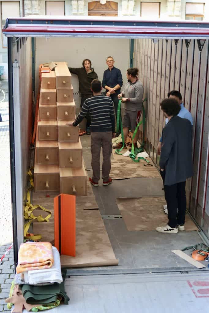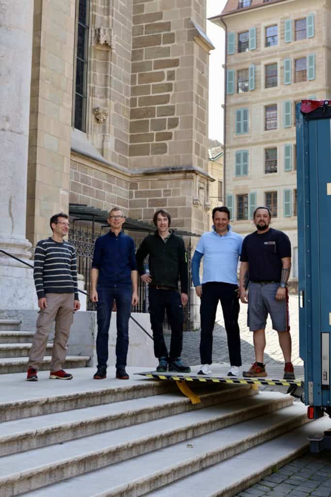 Lundi, un camion en provenance de Dietikon s’est arrêté devant la Cathédrale. À son bord : plusieurs éléments destinés à l’orgue Metzler, fabriqués dans les ateliers de la manufacture.