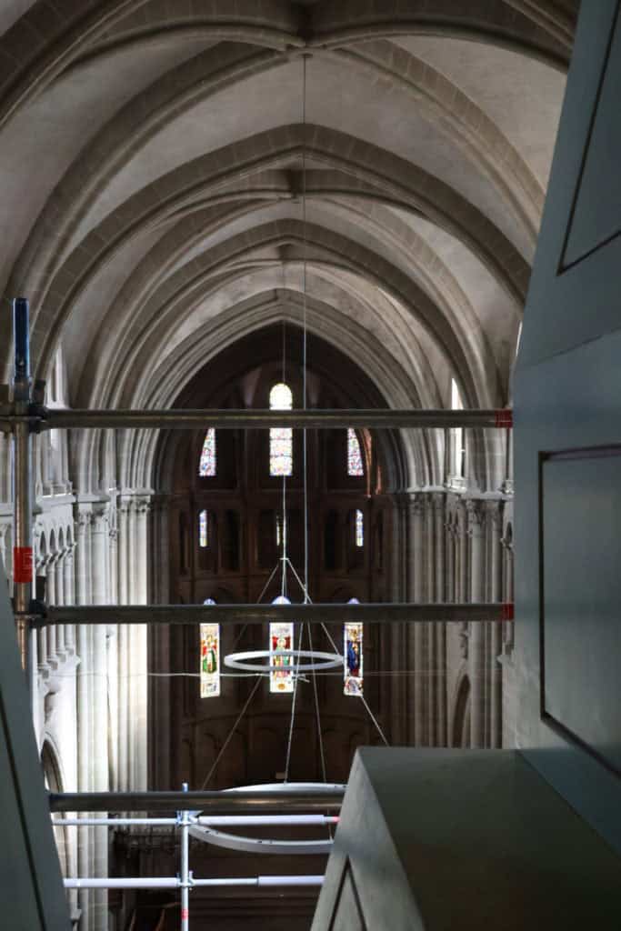 Un coup d’œil insolite sur la nef, depuis le chantier de l’orgue !